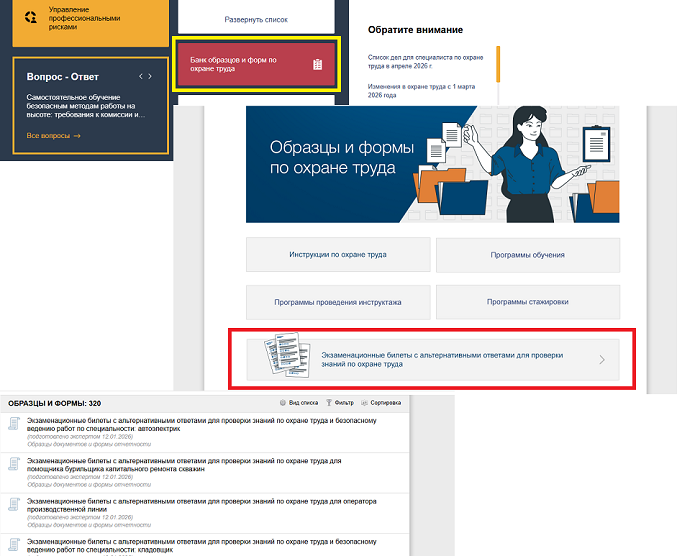 В Банке образцов и форм системы "Техэксперт: Охрана труда" доступны экзаменационные билеты с альтернативными ответами для проверки знаний работников по охране труда и безопасному ведению работ.